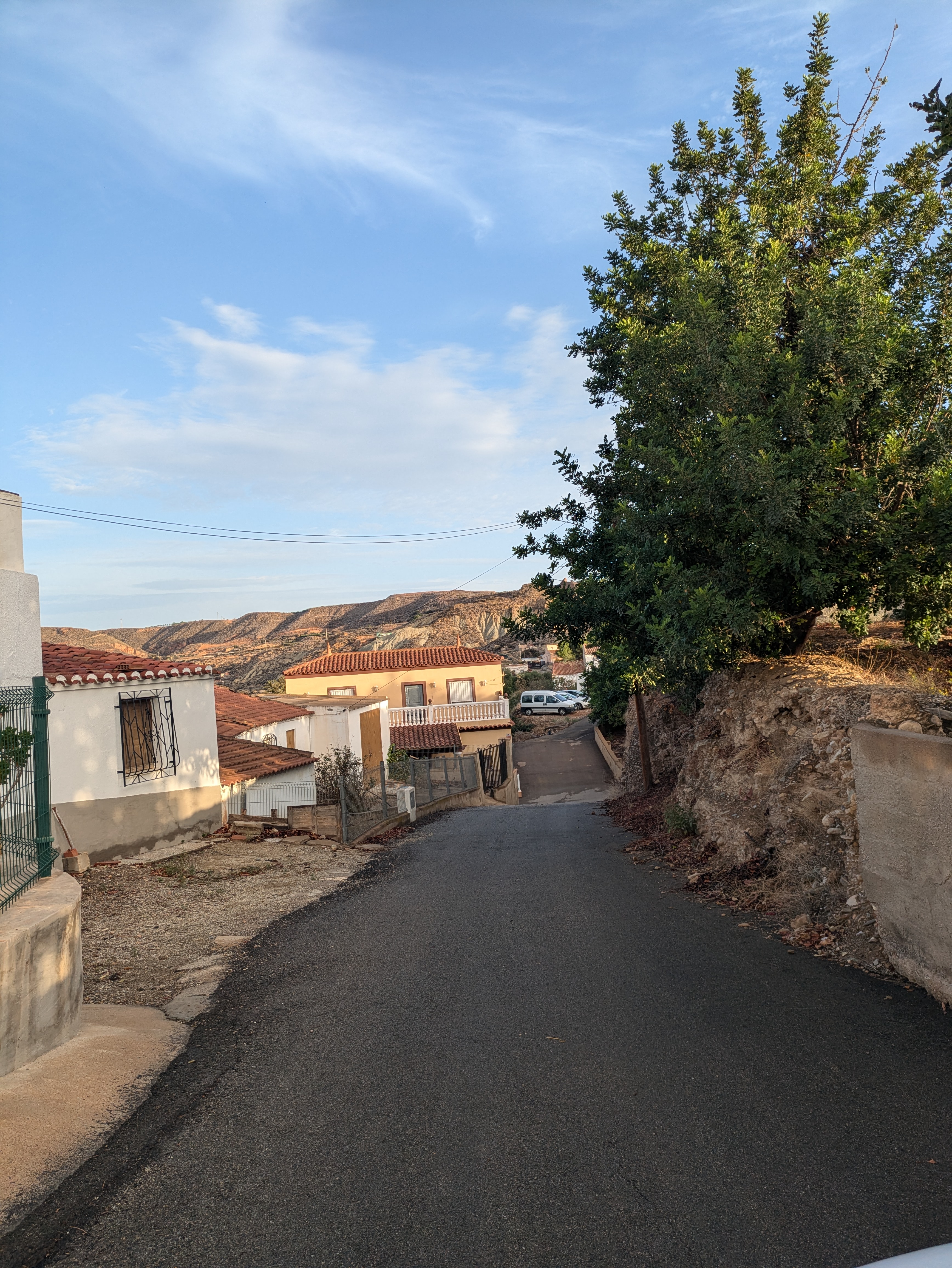 Calle asfaltada con desnivel y trazado serpenteante. No cuenta con acerado.