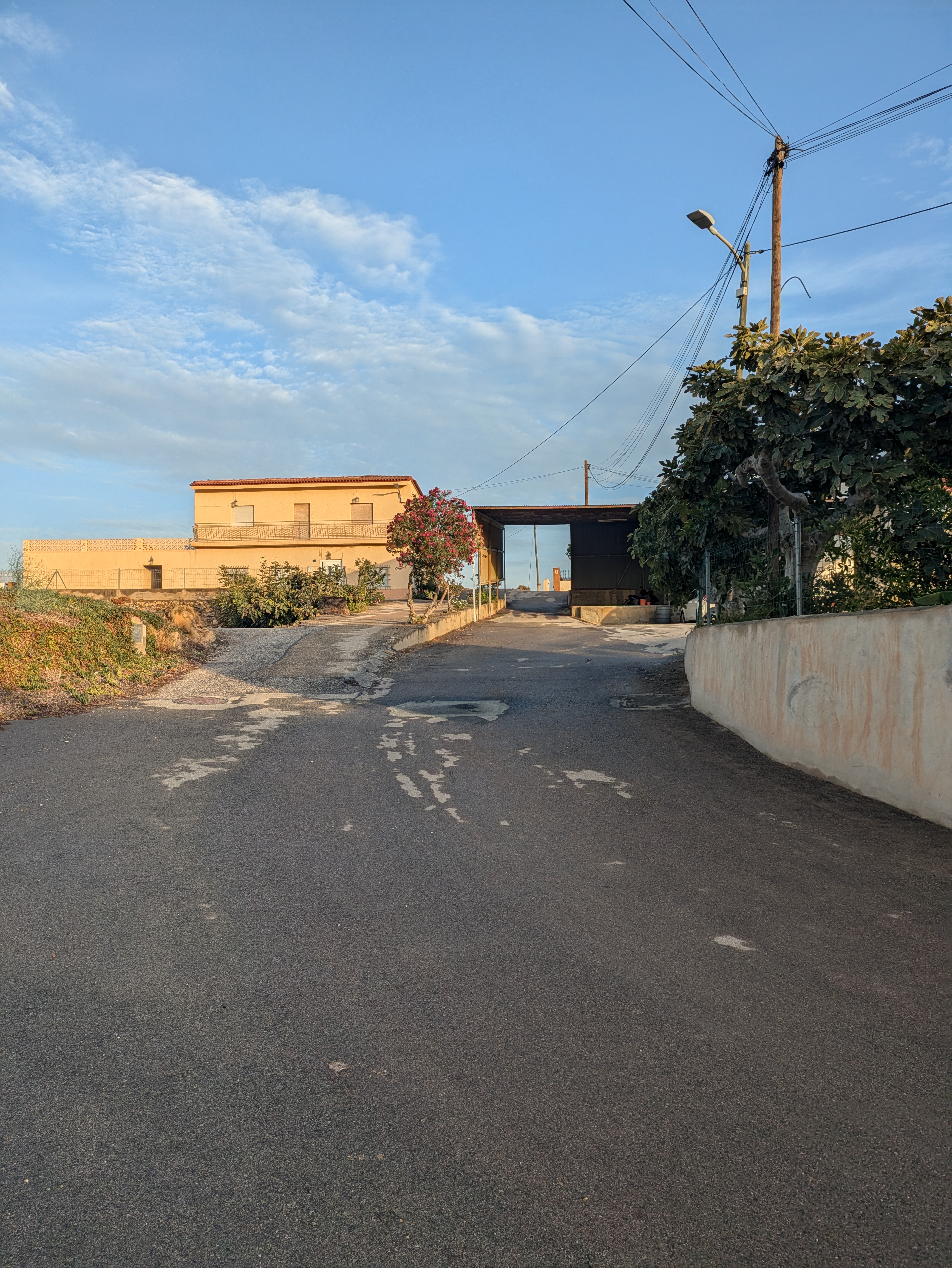 Calle cementada de un sentido de circulación, sin salida. No dispone de acerado.